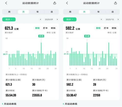雖然沒(méi)有系統(tǒng)化訓(xùn)練,但時(shí)刻關(guān)注身體信號(hào),不強(qiáng)迫則是她的跑步科學(xué):狀態(tài)好則快,但也就5分半的配速;感覺(jué)累則慢,配速6分多也是常事。她也曾嘗試過(guò)間歇跑,然而跑了一次之后,她就覺(jué)得太累了,自己完全不能承受,自此,她也再也沒(méi)跑過(guò)間歇。即便如此,一個(gè)月下來(lái),葉瑞也累積了五百多公里的跑量——于她而言,這從來(lái)不是一個(gè)需要完成的“目標(biāo)”,而是習(xí)慣成自然。