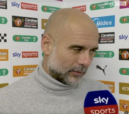 英聯(lián)杯1/4決賽,曼城主場對(duì)陣布倫特福德,賽前,曼城主帥瓜迪奧拉接受了天空體育的采訪。