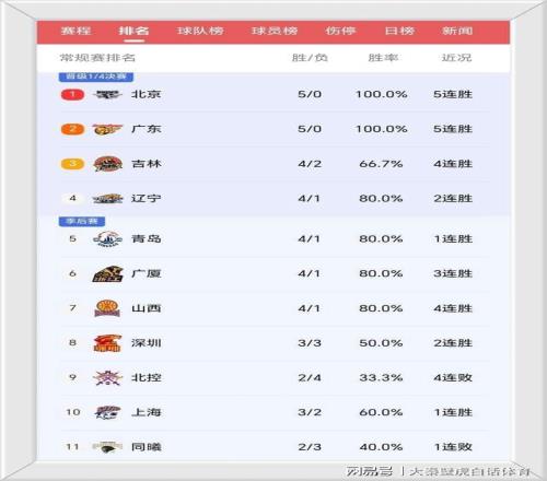 ③、青島隊4勝1負沖上第5名,將衛(wèi)冕冠軍廣廈男籃壓在身后;