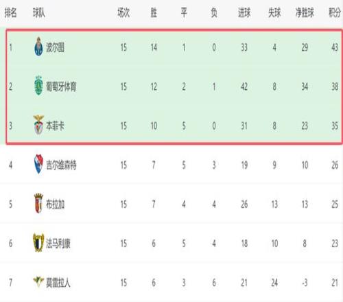 截至目前,本輪葡超的比賽已經(jīng)全部結(jié)束,加上葡萄牙體育,葡超傳統(tǒng)3強都拿到了3分,積分榜上的形勢,也沒有發(fā)生變化。如今波爾圖依然排名第一,他們領先葡萄牙體育5分,而本菲卡則落后榜首8分,目前位居第三。