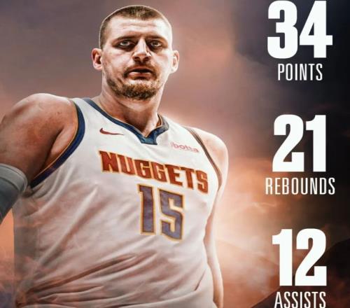 全場比賽約基奇出場38分鐘時間,投籃22中11,個人狂轟34分21籃板12助攻。這種爆炸數(shù)據(jù)下,比賽輸贏似乎都已經(jīng)不重要了,約基奇完全處于聯(lián)盟單獨一檔。