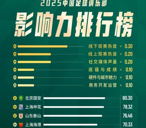 2025年馬上就要過去,現(xiàn)在正是對國內(nèi)聯(lián)賽做出總結(jié)的一個(gè)好時(shí)候。近日,一份關(guān)于俱樂部影響力的綜合評估結(jié)果在網(wǎng)上流傳開來,正好卡在聯(lián)賽總結(jié)與新周期啟動之間,看起來像是一份成績單,也像是一次對過去一年各俱樂部業(yè)績的集中盤點(diǎn)。