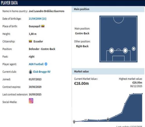 奧多涅斯毫無意義算得上厄瓜多爾山谷獨立隊這幾年里出產(chǎn)的黃金一代之一了,21歲在歐洲比甲豪門布魯日和歐冠有超過百場的比賽記錄,未來登入豪門可能性非常高(目前除了利物浦,最關(guān)注他的莫過于后防更新?lián)Q代的國米)。今年夏季窗口布魯日對于厄瓜多爾國腳要價在30m歐左右,冬季窗口也一樣愿意放人離隊,價格因為表現(xiàn)上漲,但也只有35-40m歐。我會說他肯定是愛德華茲喜歡的人,天賦明顯也是比較培養(yǎng)價值的,1月份會不會有轉(zhuǎn)會,可以拭目以待。