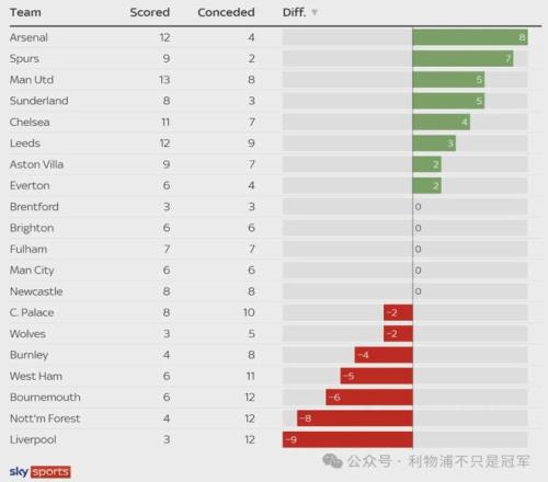 --本賽季英超不算點(diǎn)球,利物浦打進(jìn)3球丟12球,凈勝球-9,而榜首阿森納定位球打進(jìn)12球丟4球,凈勝球+8。慘不忍睹。
