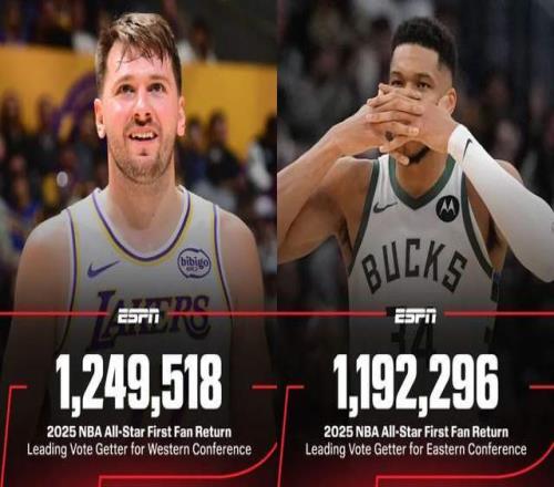 先從數(shù)據(jù)統(tǒng)計(jì)來(lái)看,目前公布的西部票王,來(lái)自于詹姆斯隊(duì)友東契奇,以1249518票斷檔領(lǐng)跑所有人。而東部票王,則給到了字母哥,統(tǒng)計(jì)票數(shù)1192296票。