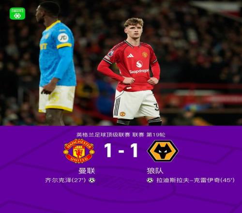北京時間12月31日,英格蘭足球超級聯(lián)賽第19輪,曼聯(lián)坐鎮(zhèn)主場迎戰(zhàn)狼隊。上半場,艾登-海文搶斷后齊爾克澤打門折射入網(wǎng),謝什科頭球攻門中柱,齊爾克澤烏龍助攻克雷伊奇頭球破門扳平;下半場,莫斯克拉頭球解圍差點烏龍,克雷伊奇捅射被拉門斯撲救,謝什科打門被撲后多古補射破門被判越位進球無效。最終以1比1握手言和。