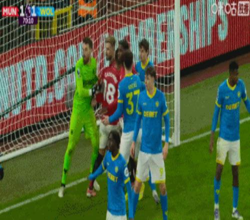第45分鐘,齊爾克澤頭球烏龍助攻,克雷伊奇頭球破門扳平!曼聯(lián)1-1狼隊