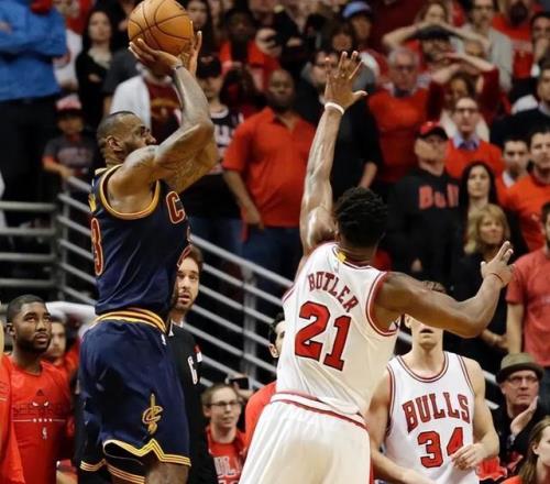 15年季后賽打公牛,騎士主教練布置了一個(gè)JR投絕殺球的戰(zhàn)術(shù)。詹姆斯拿過戰(zhàn)術(shù)板說了一句“絕對(duì)不行”,然后擦掉了教練畫的戰(zhàn)術(shù)自己重新畫了一個(gè),他說:“我將會(huì)這樣做,我會(huì)從這里走,然后到到底角,把球給我,我會(huì)投進(jìn)它?!比缓笳材匪咕驮谟?jì)劃中底角,在年輕的巴特勒頭上投進(jìn)了絕殺。