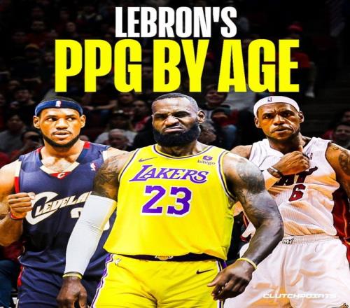 有媒體BronMuse統(tǒng)計(jì)并公布了詹姆斯從出道的18歲到41歲生日前的40歲,每個(gè)年齡段的最高得分。其中18歲最低,只有37分,當(dāng)時(shí)詹姆斯才出道。40歲還有42分。最高是29歲,61分。第二低反而在巔峰期,大概因?yàn)椴恍枰l(fā)力,34歲、39分。其他都是40分、50分這個(gè)區(qū)間。CLUTCHPOINTS統(tǒng)計(jì)的是每個(gè)年齡段的場(chǎng)均得分,18歲是20.2分,最低,21歲最高,30.2分,37歲是30.1分,40歲是24分,其他是25、26、27、28、29分。