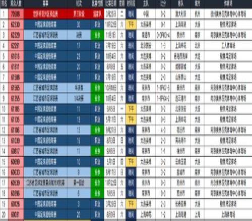 在排名前20位的比賽里,8場是蘇超比賽,而且這8場比賽都是在南京奧林匹克體育中心體育場進(jìn)行。不過,大連英博主場梭魚灣9場躋身前20位,從而成為躋身前20位最多的球場。