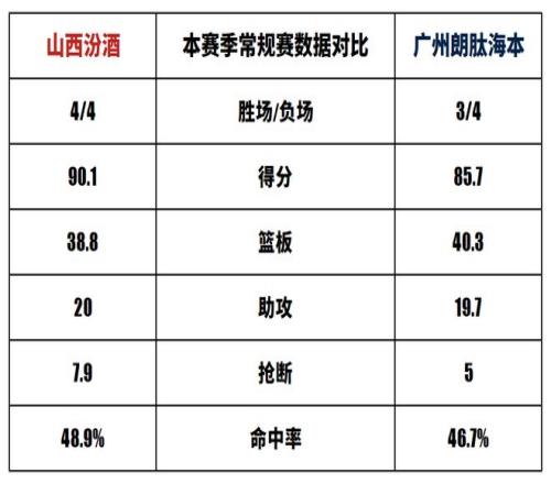 本賽季常規(guī)賽場(chǎng)均數(shù)據(jù)對(duì)比