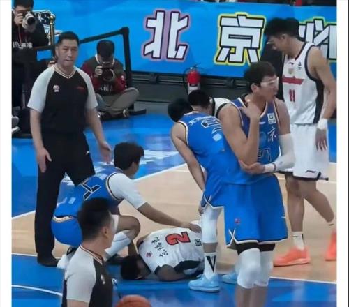 徐杰是第二節(jié)還是4分多鐘時(shí),被周琦意外撞倒的,作為大中鋒,周琦體重巨大,撞到徐杰的膝蓋和腳踝,讓后者痛苦不堪,隨后倒地不起。在徐杰受傷后,北京隊(duì)立馬停止了進(jìn)攻,有2位北京球員更是立馬采取行動(dòng),對(duì)徐杰進(jìn)行關(guān)心。首先是作為前隊(duì)友的趙睿,他看到徐杰受傷,指了指后,將倒地的周琦拉起,然后蹲下來(lái)慰問(wèn)徐杰的情況,并緊急招手呼叫隊(duì)醫(yī)過(guò)來(lái)。