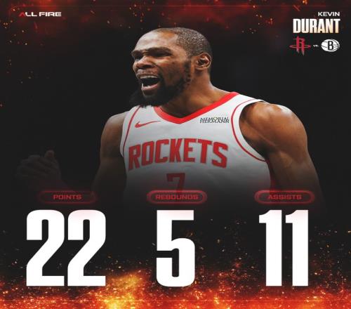 此役后火箭拿到21勝10負(fù)跟西部第五的湖人拉開到1個(gè)勝場(chǎng),火箭距離西部第三的掘金也只剩下1個(gè)勝場(chǎng),杜蘭特在這一波四連勝中的貢獻(xiàn)是火箭最高的。