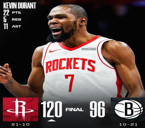 北京時間1月2日,火箭120-96大勝籃網(wǎng)拿到四連勝,火箭穩(wěn)住了他們西部上半?yún)^(qū)的席位,火箭距離西部第三的掘金只剩下1個勝場,而且掘金的替補中鋒瓦蘭也傷了,火箭重返西部第三似乎已經(jīng)是板上釘釘,杜蘭特的競技狀態(tài)一如既往的穩(wěn)定。